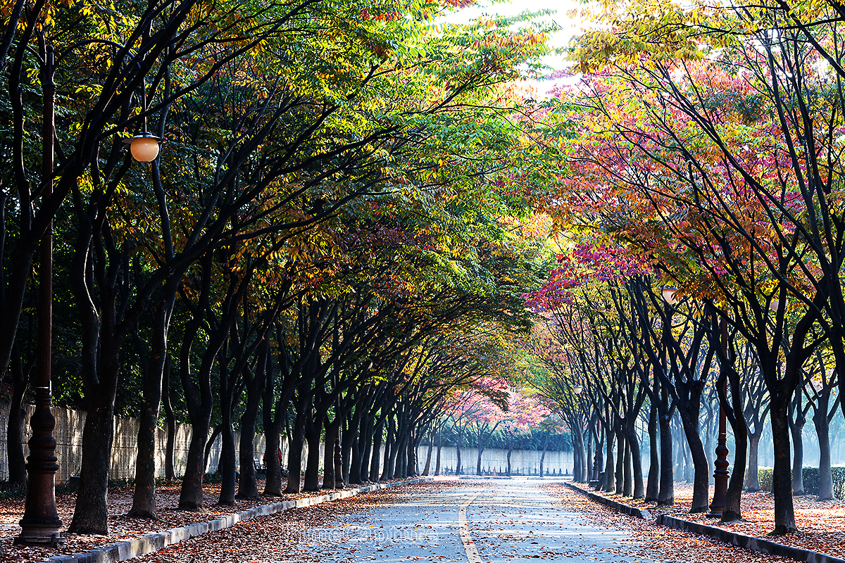 인천,공원,가을,시골길,틴들현상,아침
